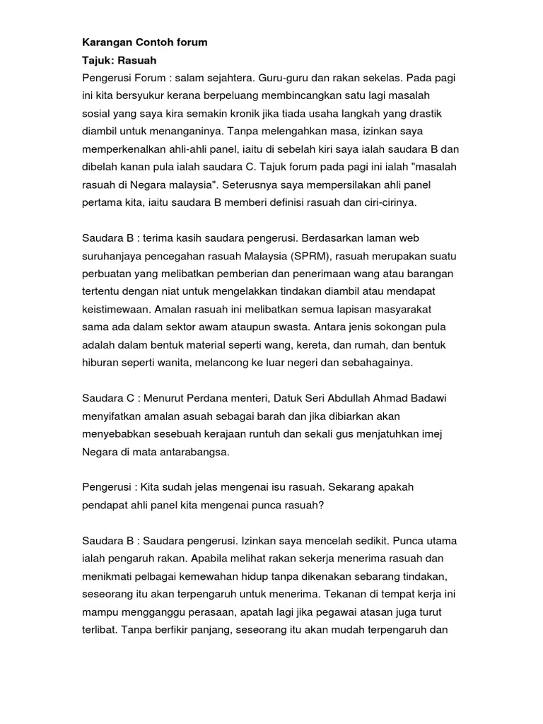 Contoh Karangan Forum